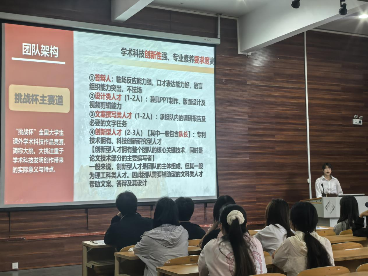 陈钰围绕学习、生活、科研比赛等方面进行经验分享,尤其在参加竞赛分享环节,借助详细的表格,将各类竞赛信息清晰呈现,从竞赛名称、参赛要求到备赛要点,毫无保留地为同学们讲解,让大家对各类竞赛有了更全面深入的认识,极大激发了同学们参与竞赛的热情。 在学习经验分享中,陈钰谈到制定阶段目标与建立知识体系的重要性,建议同学们制定适合自己的学习计划,定期总结复盘,提升学习效率。生活方面,她分享了如何平衡学业与个人生活,鼓励大家积极参与校园活动,拓展社交圈,丰富老员工活体验。